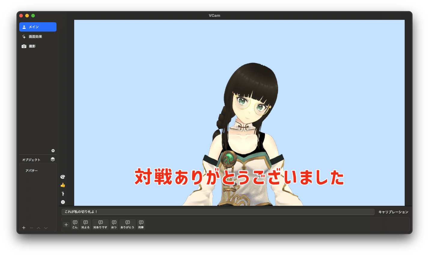 こんな感じでよく使う定型文を登録したり、自分で打った文章を字幕として表示させたりできます。絵文字や画像を表示させたりもできます。「Macだと字幕や喋ったことを表示するのに何をどうやったらいいのかわからない」って場合でも定型文や打った文章を字幕にできるのでかなり助かります。