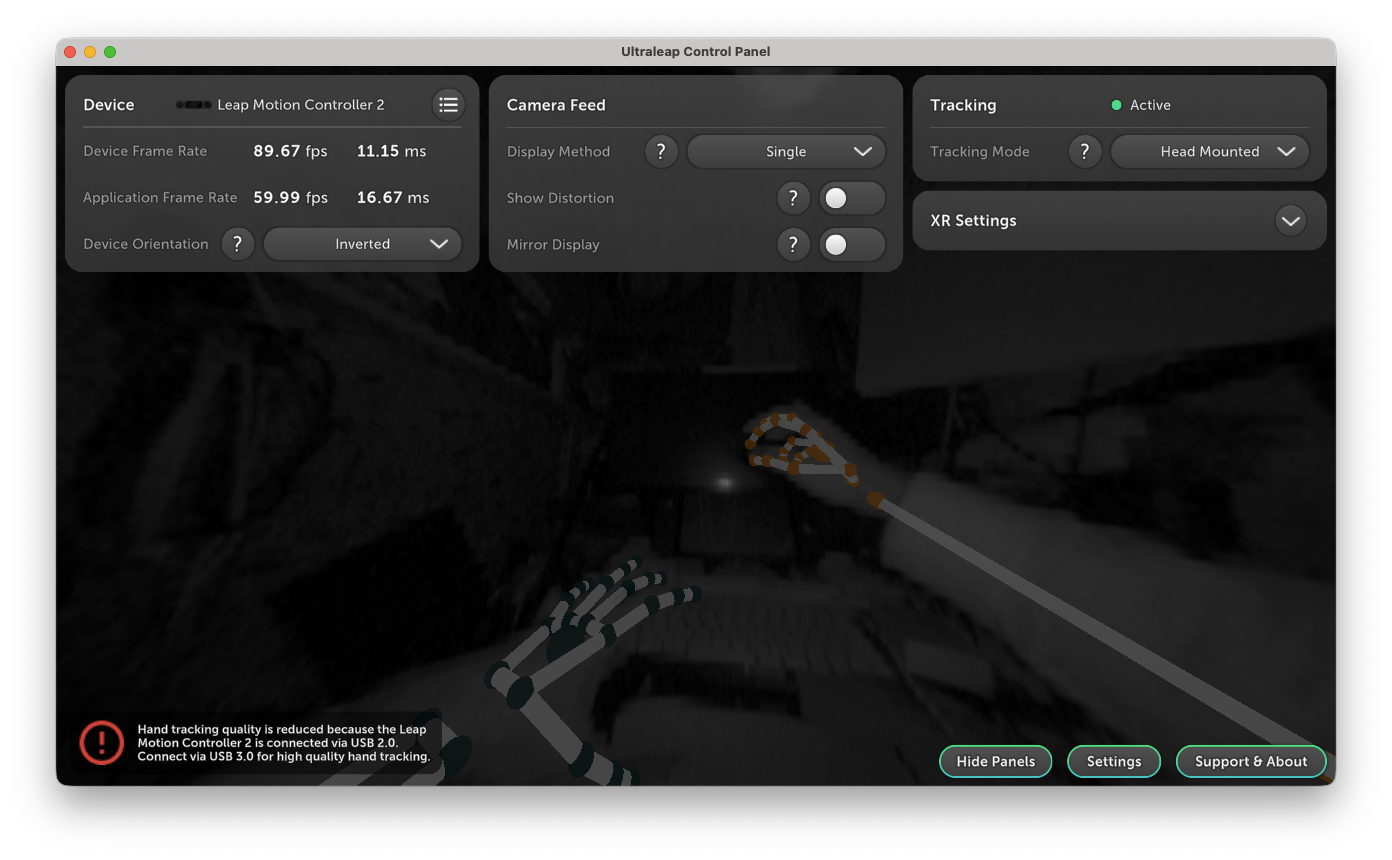 「3tene」無料版はLeapMotion内蔵なのでテストでLeapMotionの動作を試すだけなら無料版でも可能。PRO版の場合追加購入で1100円必要。先にLeepMotion公式 でApple Silicon用のソフトをDLして設定してLeapMotionを首からブラ下げるときは設定を「Head Mounted」にしてカメラの手の映像を「Lnveted」で反転しておく。