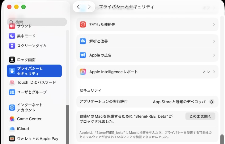 配信に必要なソフトがこんな感じの警告が出て起動しませんって場合はMac OSの「設定」>「プライバシーとセキュリティ」の項目から「このまま開く」を選んで1度起動して下さい。