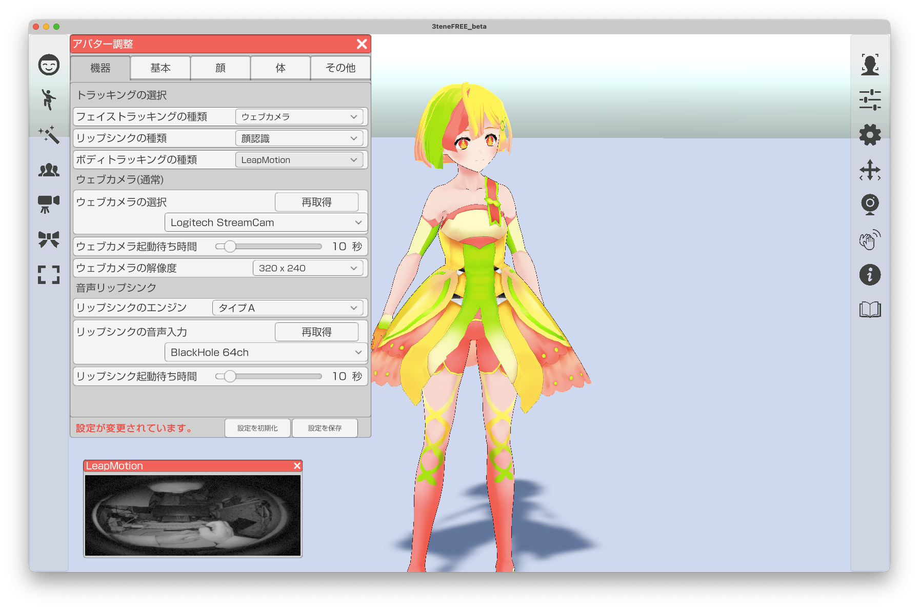 「3tene」で「LeepMotion」を使う。