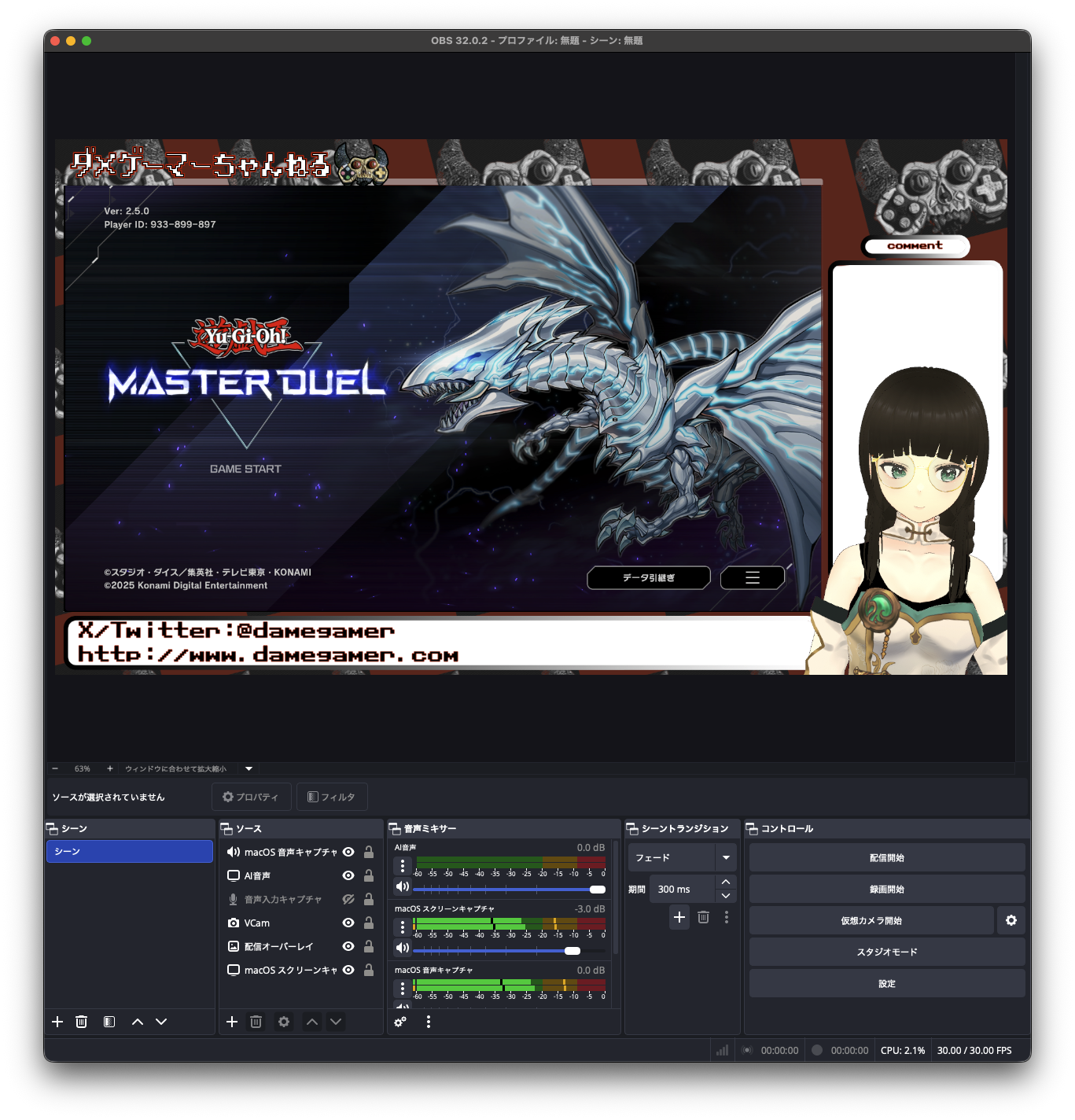 今回は出来る限りMacのみでVTuberっぽいゲーム配信をできる環境を作ってみます。