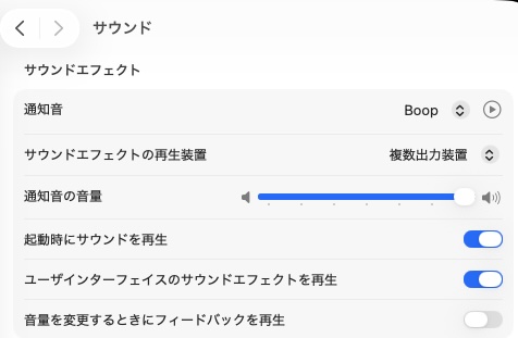 ・3、設定>サウンドで「サウンドエフェクトの再生装置」を「複数入力装置」にします