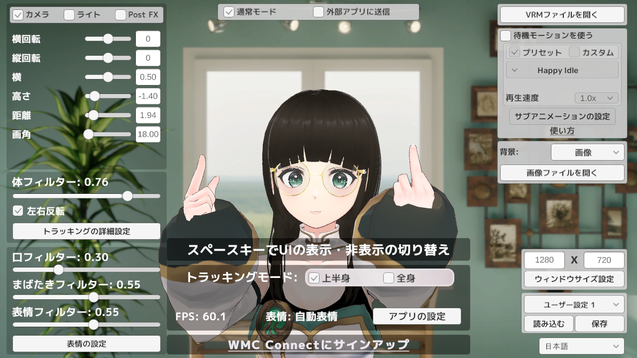 ・Webカメラでトラッキングしてアバターを表示するアプリ(詳細は後述)