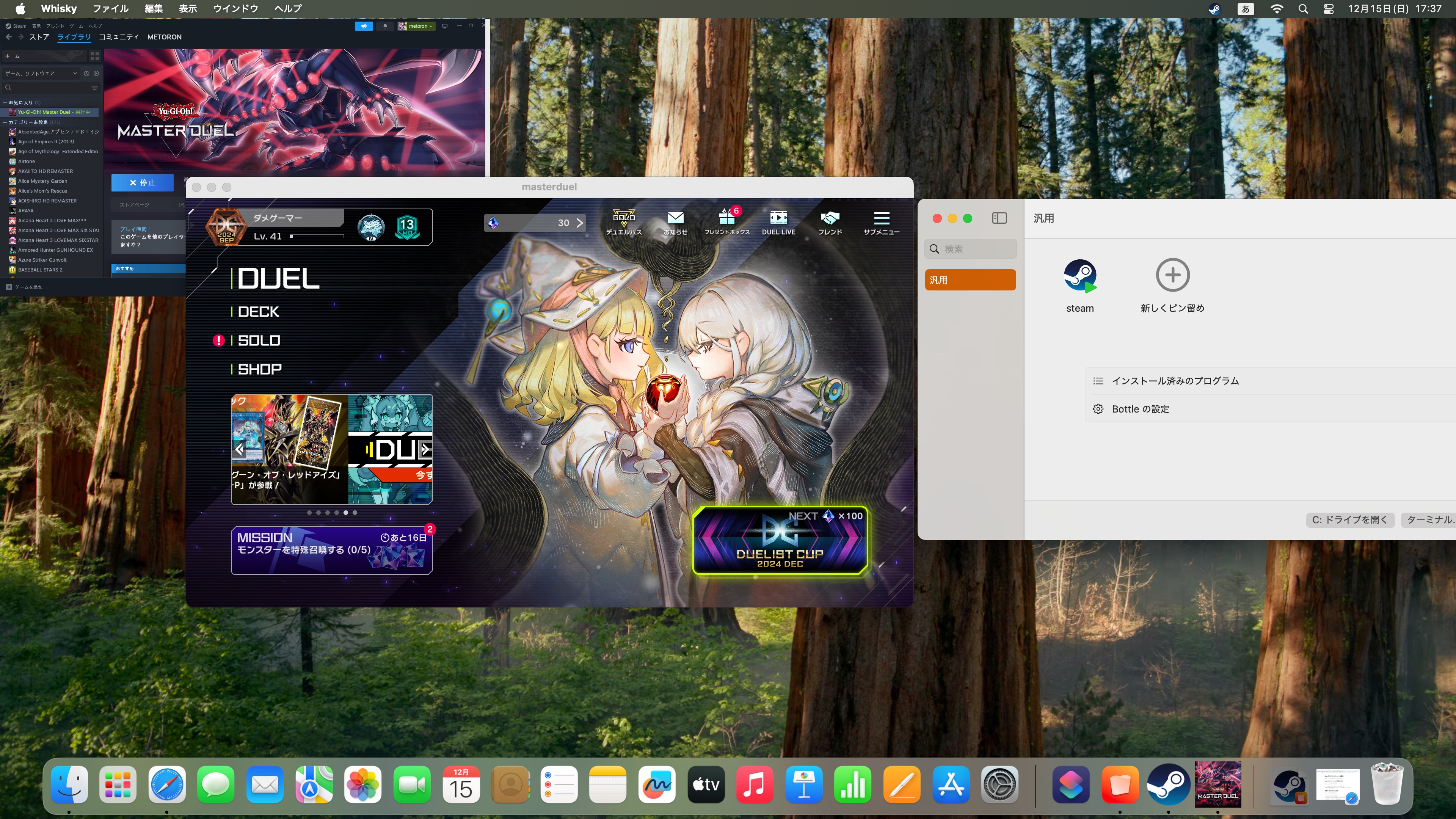 実際にMacでSteam版「遊戯王マスターデュエル」を起動している画像。速度上は全然問題ないです。