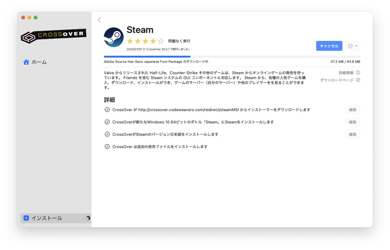 Windows版「Steam」をMacで起動してゲームする